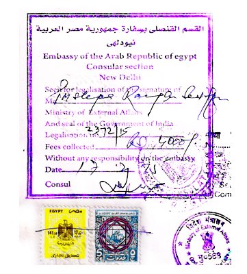 - Attestation from Egypt Embassy in Delhi/Mumbai