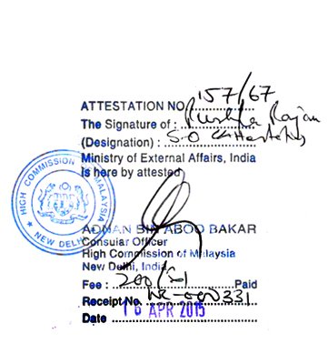 - Attestation/Legalization from Malaysia Embassy in Delhi/Mumbai