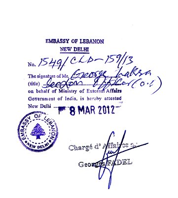 - Attestation/Legalization from Lebanon Embassy in Delhi/Mumbai