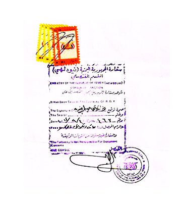 - Attestation from Yemen Embassy in Delhi/Mumbai