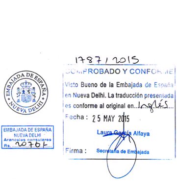 - Attestation/Legalization from Spain Embassy in Delhi/Mumbai
